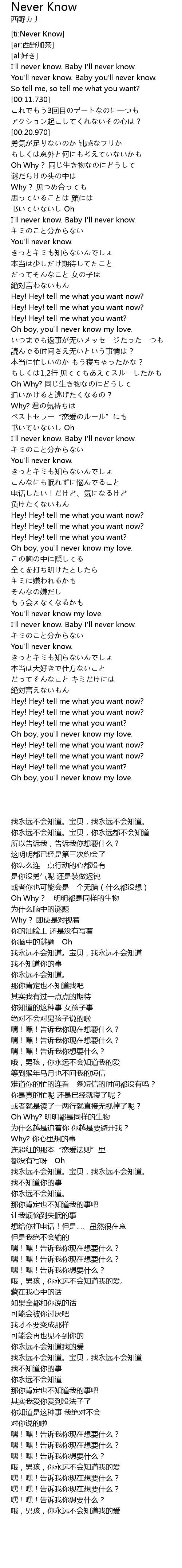 | [ti:Never Know] | |