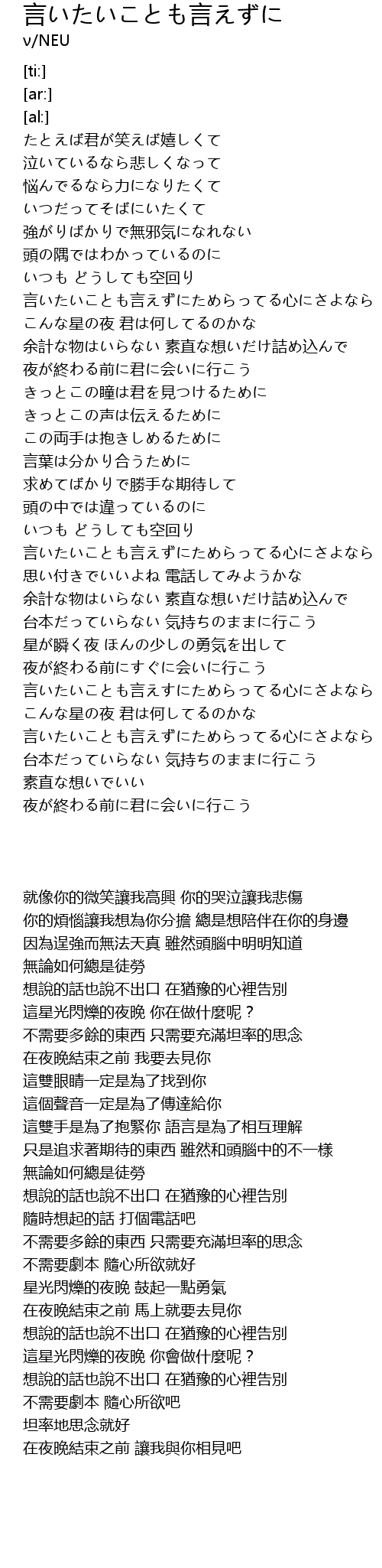 | 歌曲 | 言いたいことも言えずに |