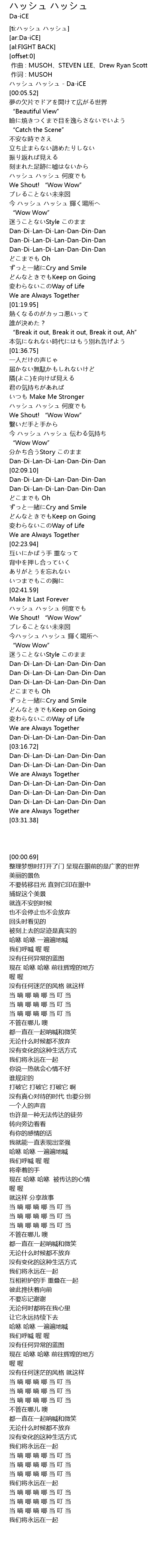 | [00:00.69] | ハッシュ ハッシュ - Da-iCE |
