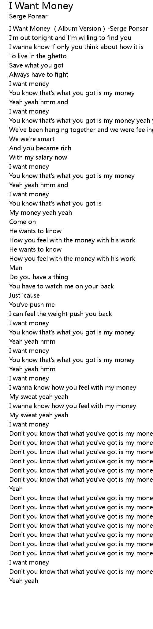 | [00:00.162] | I Want Money Album Version Serge Ponsar |