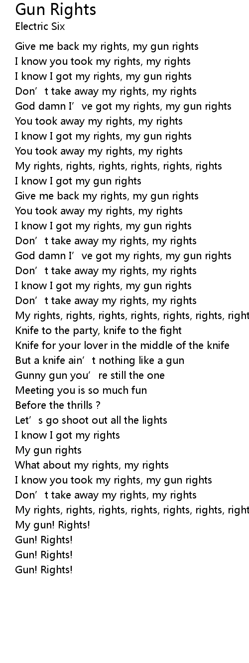 | Give me back my rights, my gun rights | |