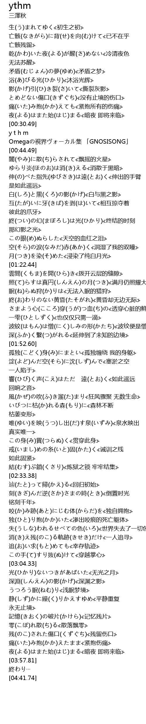 | [00:33.49] | Omegaの視界ヴォーカル集 「GNOSISONG」 |