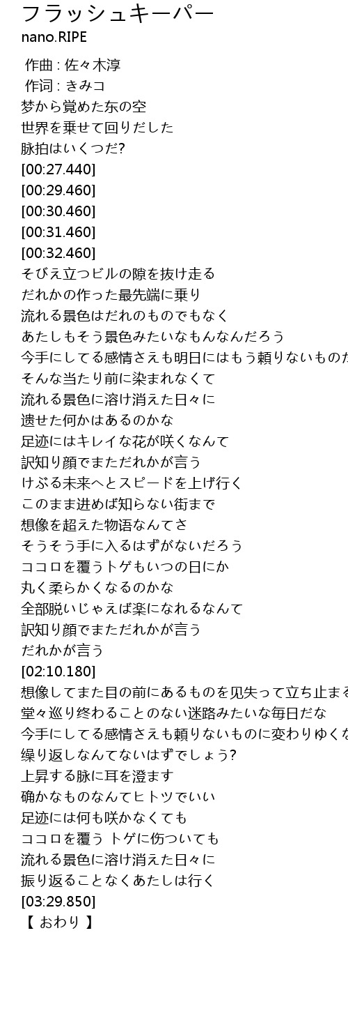 | [00:46.440] | 流れる景色はだれのものでもなく |