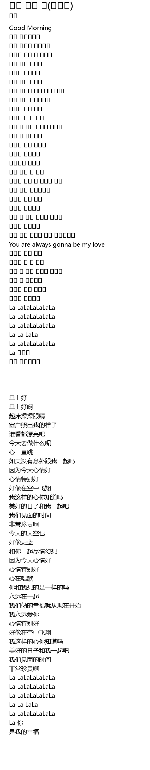 | [00:05.31] | 좋은 아침이에요 |
