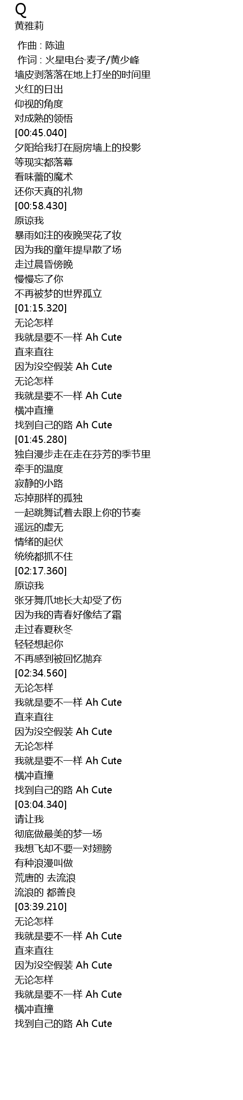 | [02:36.450] | 我就是要不一样 Ah Cute |