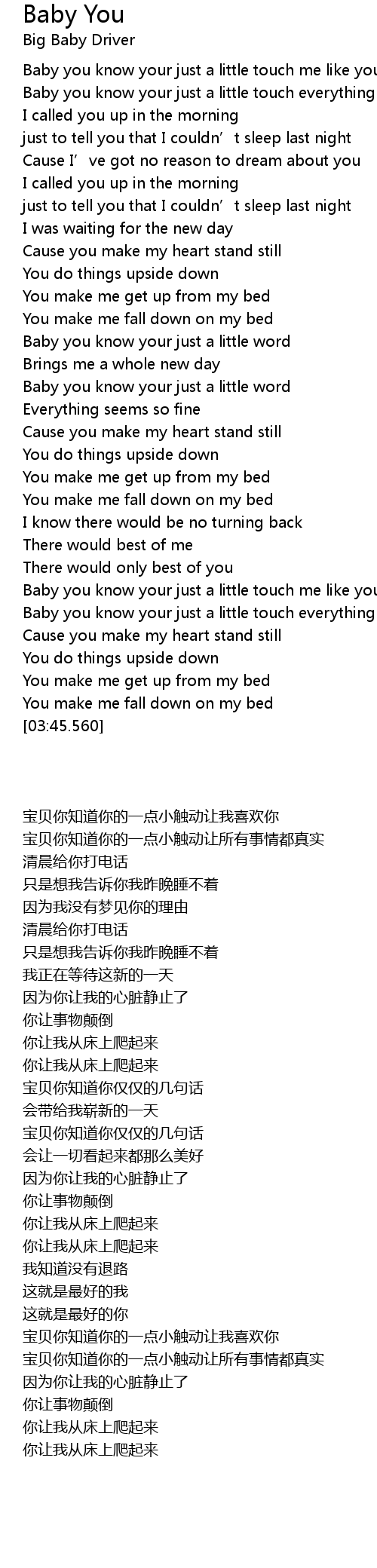 | [00:02.130] | Baby you know your just a little touch me like you do |