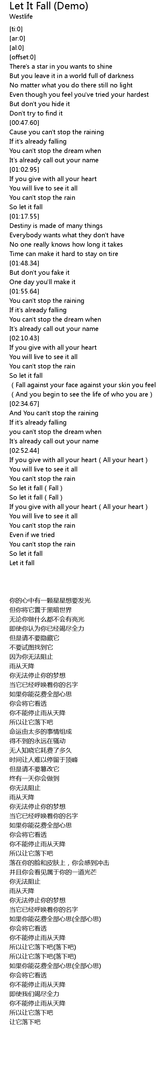 | [03:02.71] | So let it fall Fall |