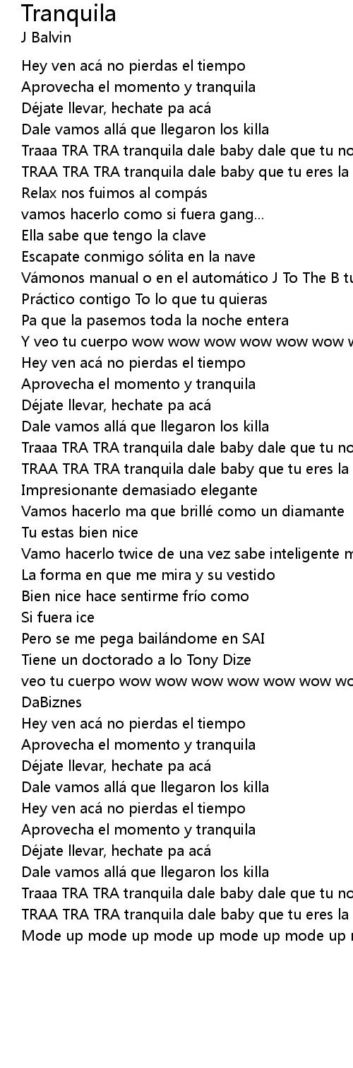 | TRAA TRA TRA tranquila dale baby que tu eres la que má s domina | |