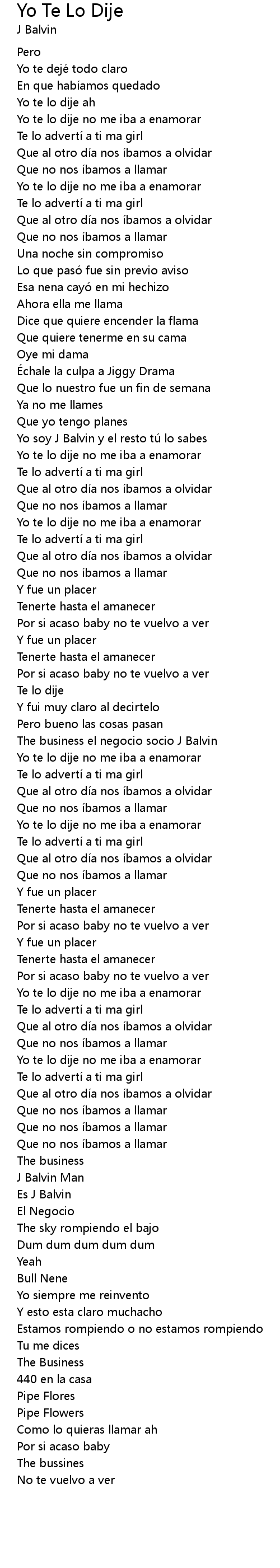 | 歌曲 | Yo Te Lo Dije |