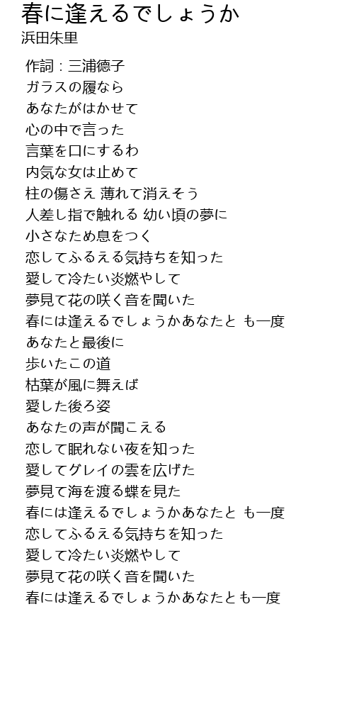 | [01:30.155] | 春には逢えるでしょうかあなたと も一度 |