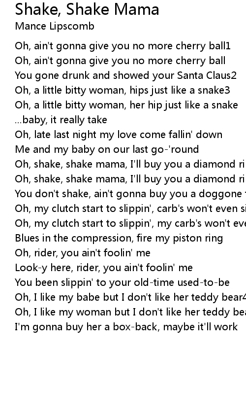 Oh, shake, shake mama, I'll buy you a diamond ring |