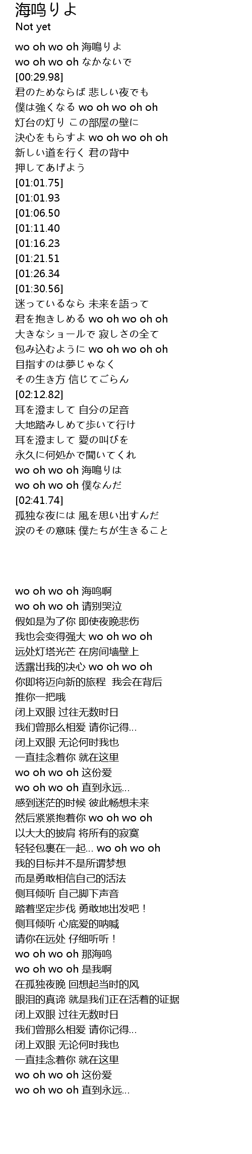 | [00:20.18] | wo oh wo oh 海鳴りよ |