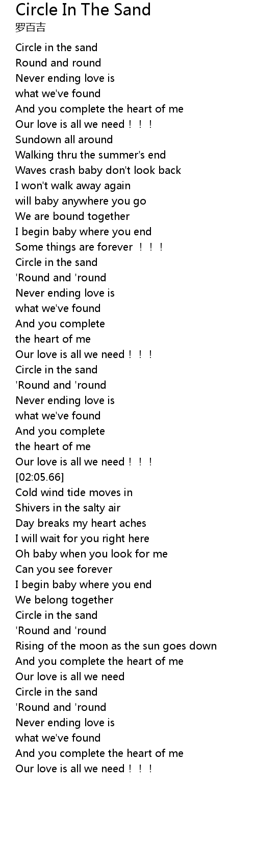 | [01:51.95] | Circle in the sand |