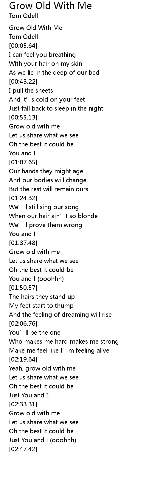 | [02:15.39] | Make me feel like I’m feeling alive |