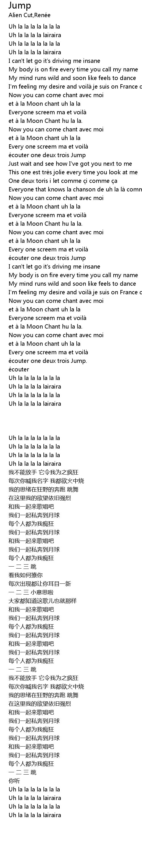 | [01:00.090] | écouter one deux trois Jump |