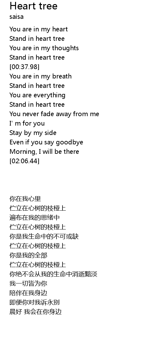 | [00:31.94] | Stand in heart tree |