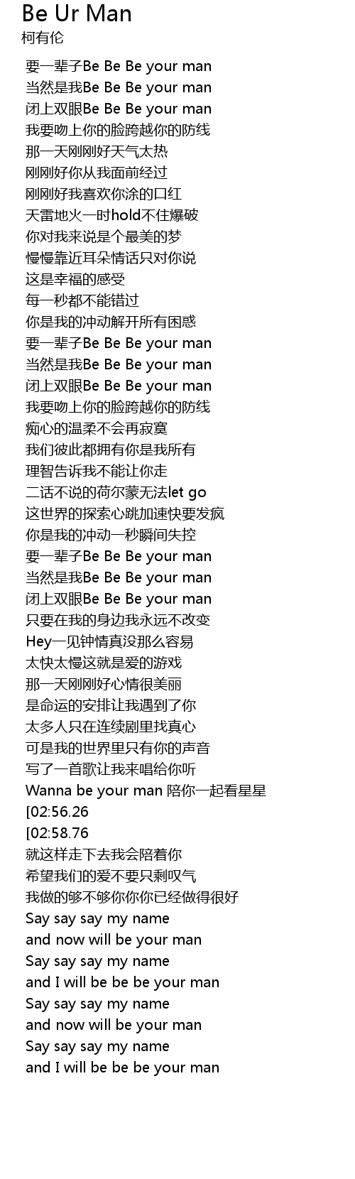 [02:16.64] dāng rán shì wǒ Be Be Be your man