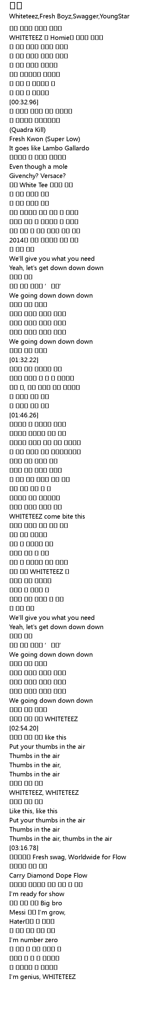 | [00:17.05] | WHITETEEZ 내 Homie들 제대로 보여줘 |