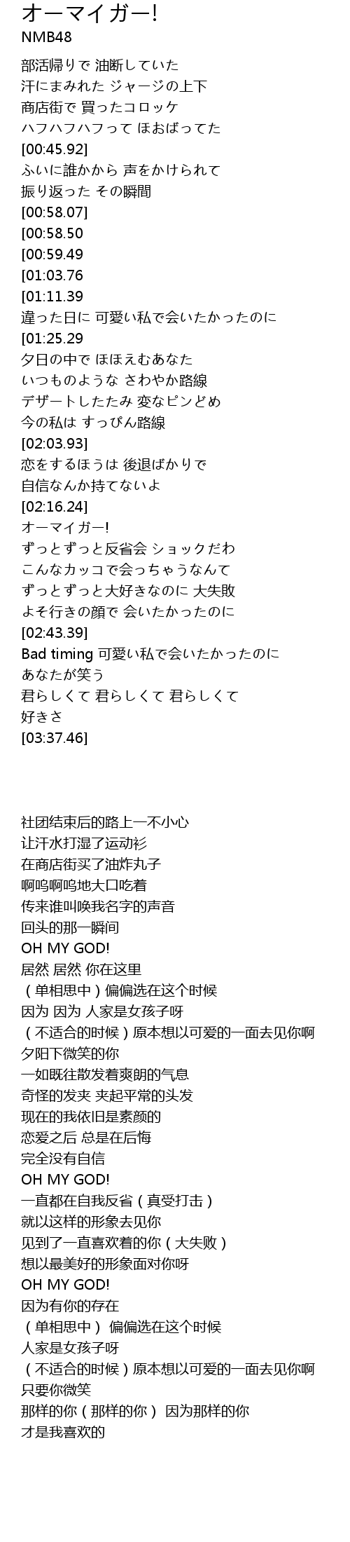 | [02:58.64][00:58.50] | オーマイガー! |