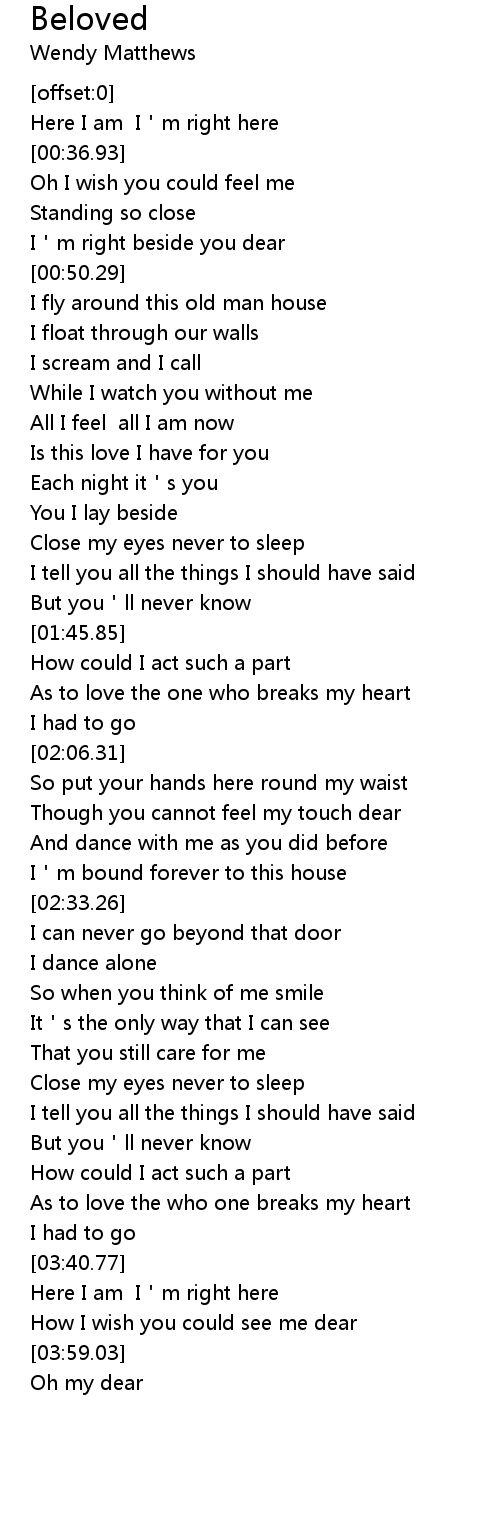 | [00:45.64] | I m right beside you dear |