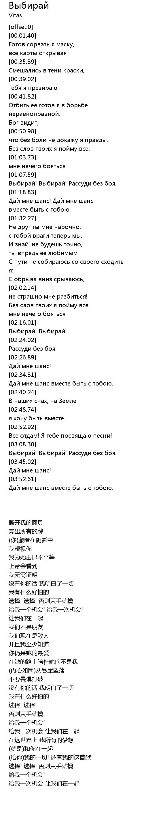 | [03:37.48] | Выбирай! Выбирай! Рассуди без боя. |
