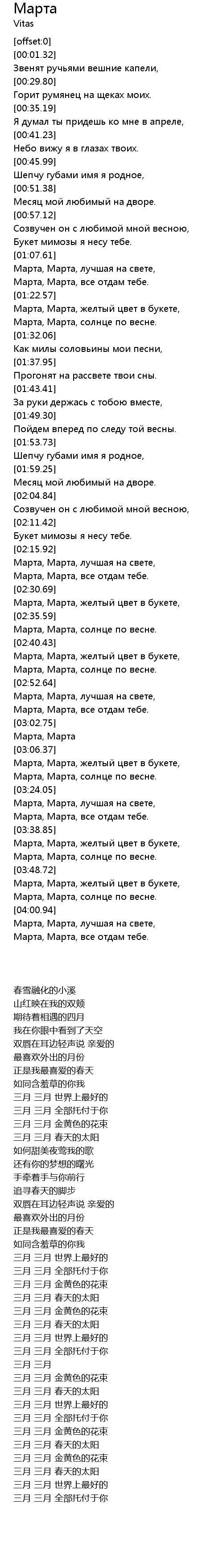 | [03:19.38] | Марта, Марта, солнце по весне. |
