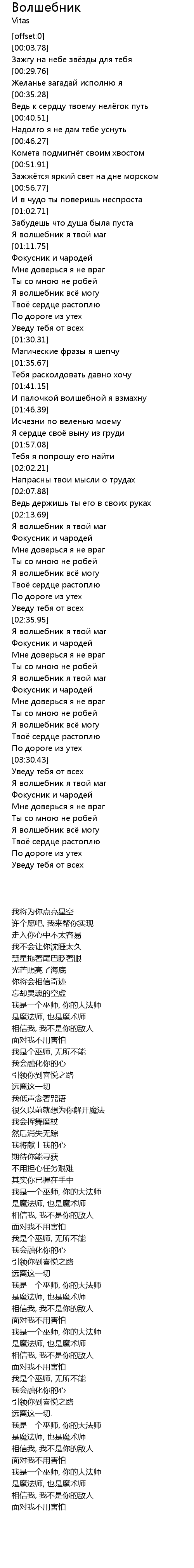 | [03:33.44] | Я волшебник я твой маг |
