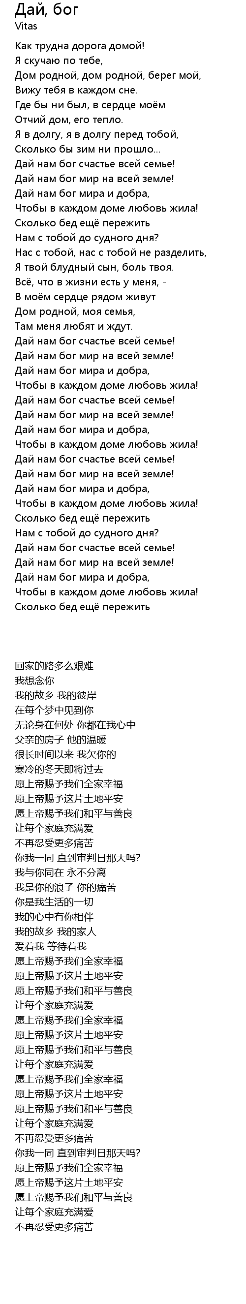 | 歌曲 | Дай, бог |