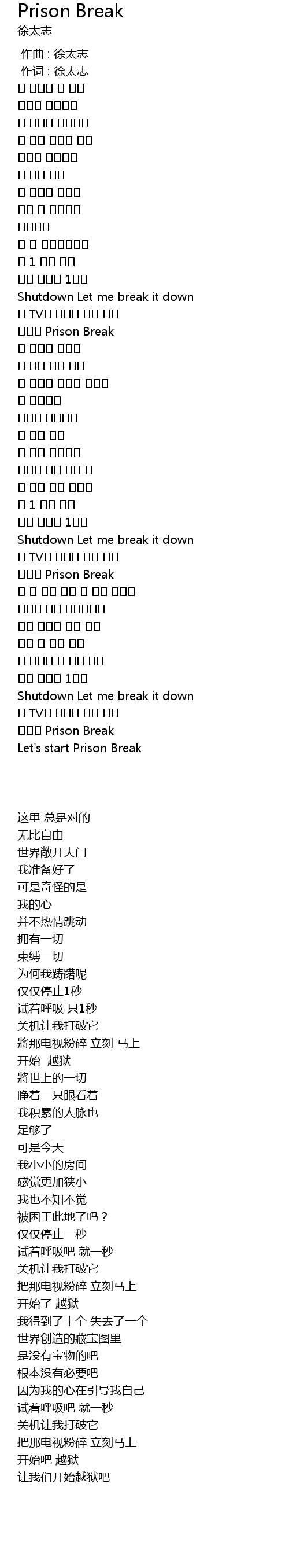 | 歌曲 | Prison Break |
