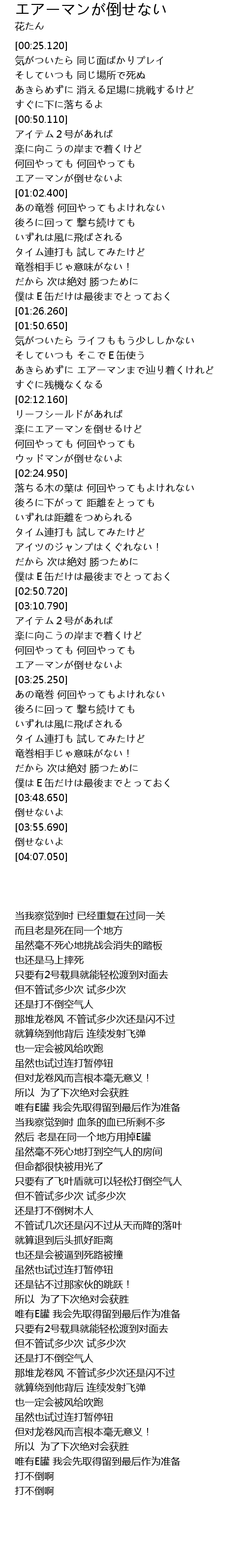 | [03:25.390] | あの竜巻 何回やってもよけれない |