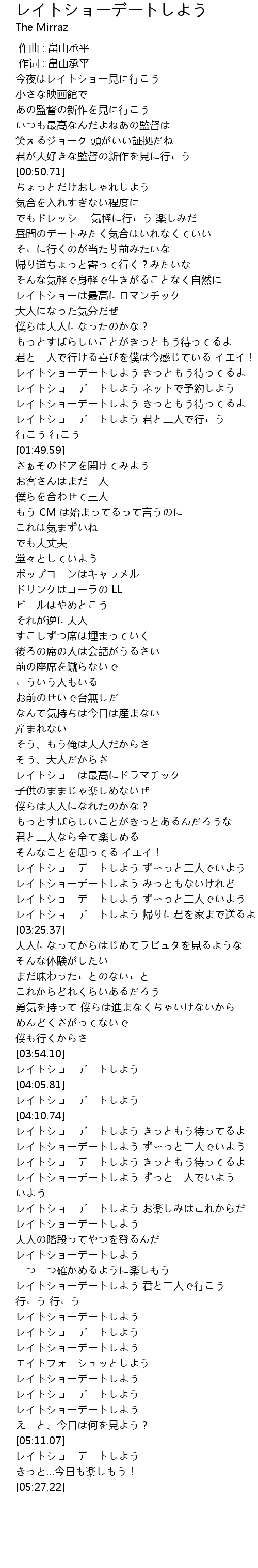 | [05:01.14] | レイトショーデートしよう レイトショーデートしよう |