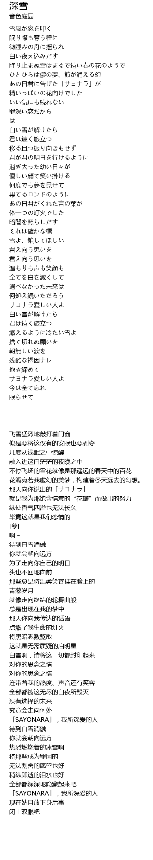 | [00:47.41] | 降り止まぬ雪はまるで遠い春の花のようで |