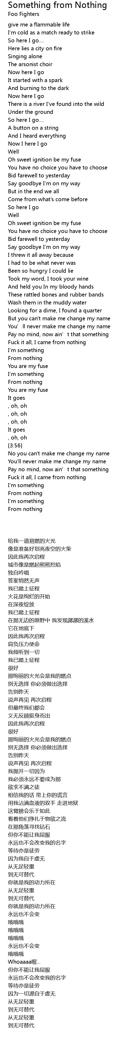 | 歌曲 | Something from Nothing |