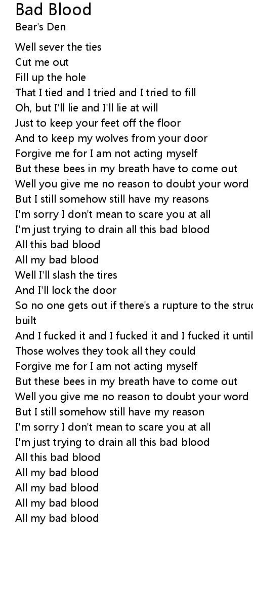 All my bad blood |