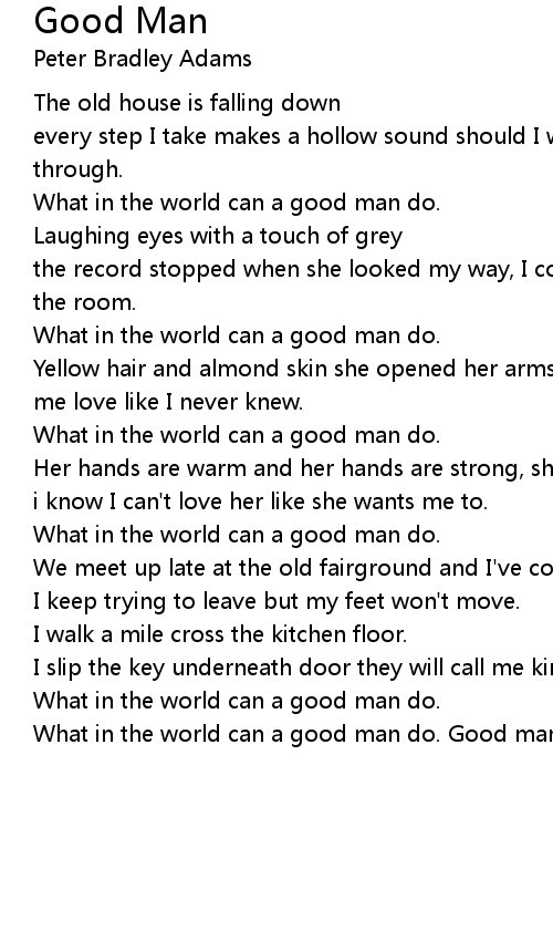What in the world can a good man do. Good man do. |