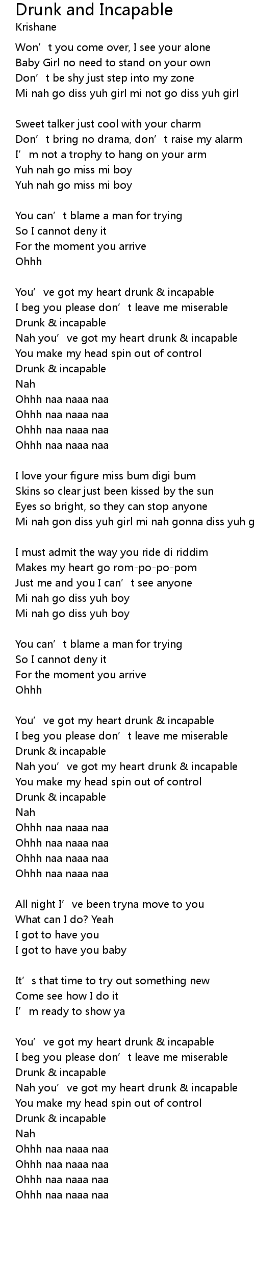 | Nah you’ve got my heart drunk & incapable | |