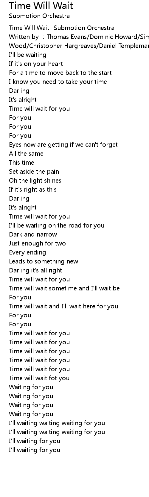| [03:13.796] | Time will wait sometime and I'll wait be |