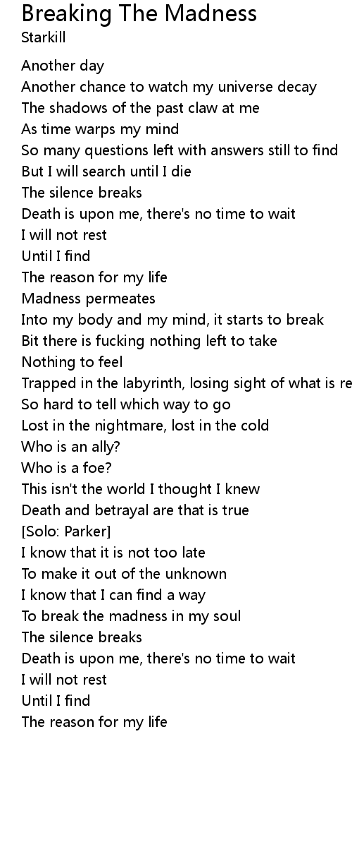 To break the madness in my soul |