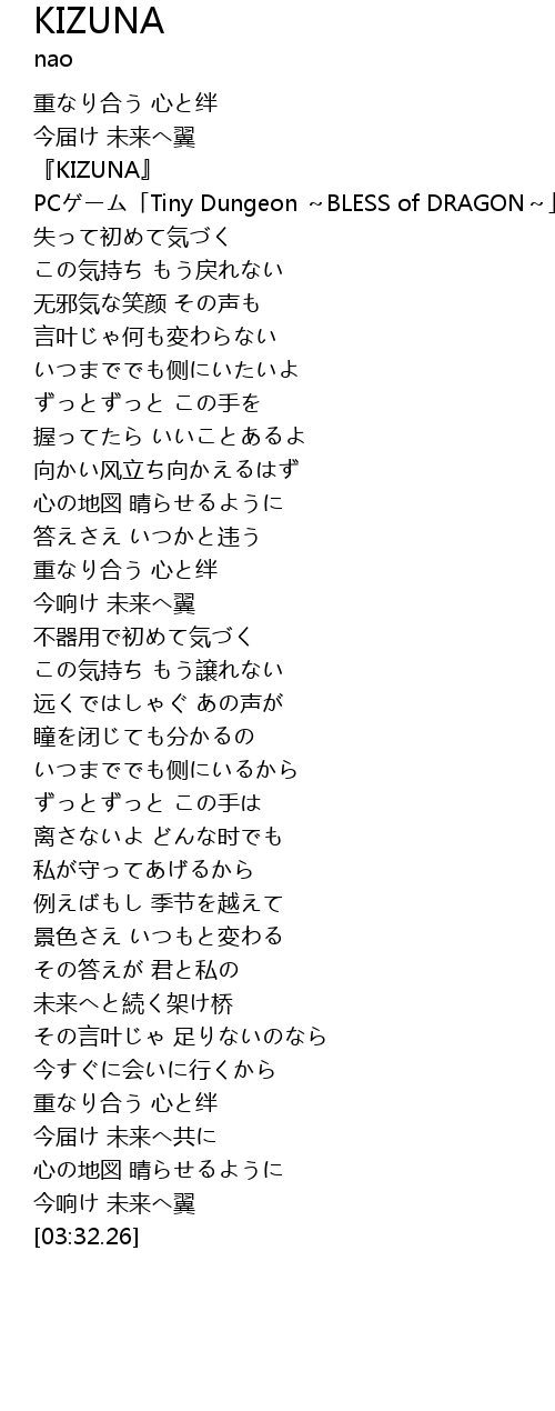 | [00:13.87] | PCゲーム「Tiny Dungeon ~BLESS of DRAGON~」OPテーマ |