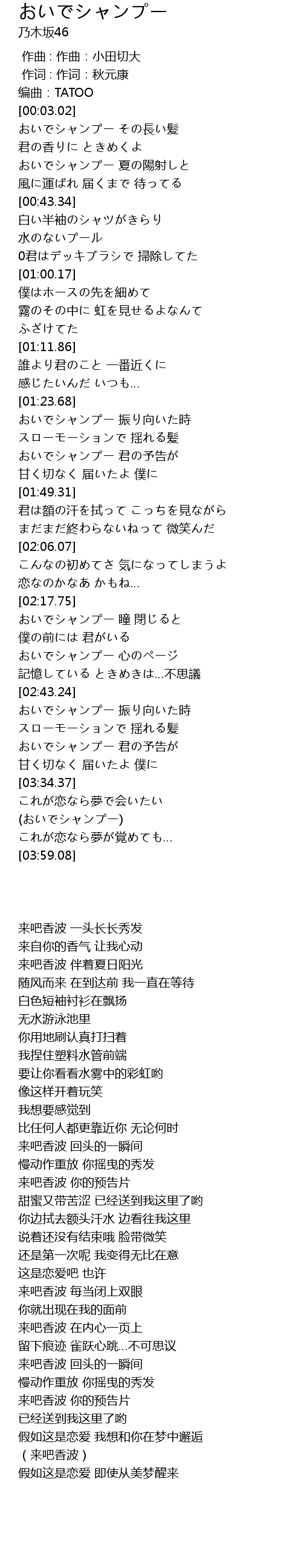 | [02:18.03] | おいでシャンプー 瞳 閉じると |