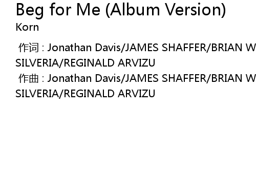 | [00:00.000] | zuò qǔ : Jonathan Davis JAMES SHAFFER BRIAN WELCH DAVID SILVERIA REGINALD ARVIZU |