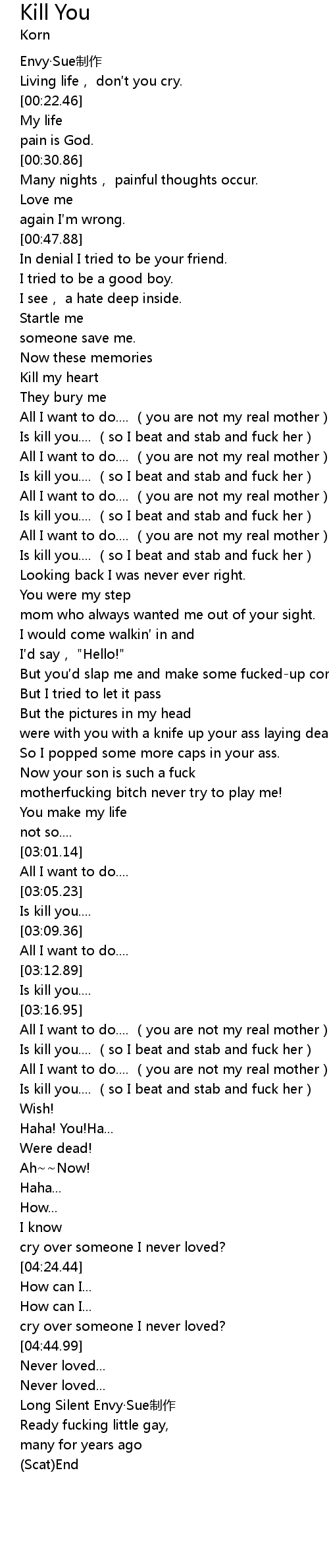 | [03:22.20] | Is kill you.... (so I beat and stab and fuck her) |