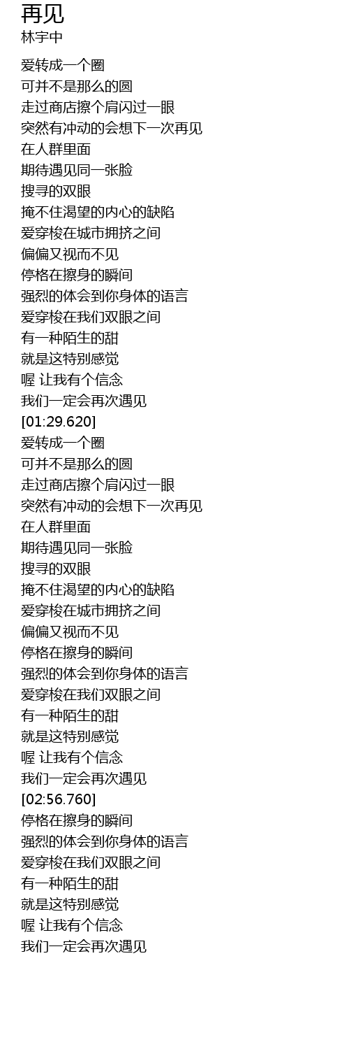 | [02:00.820] | 期待遇见同一张脸 |