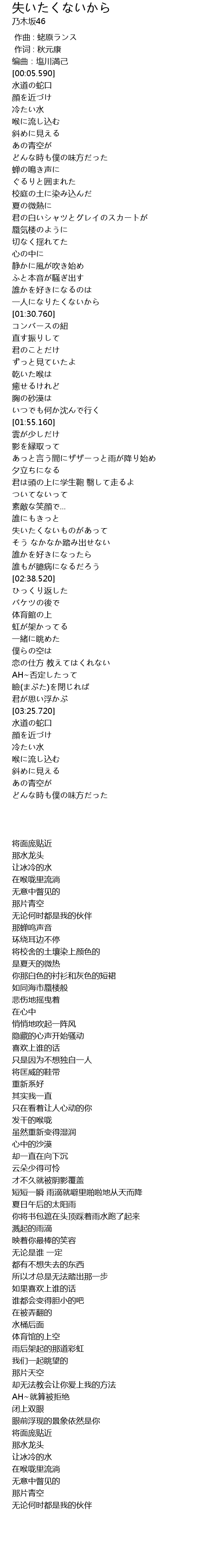 | [00:58.410] | 君の白いシャツとグレイのスカートが |