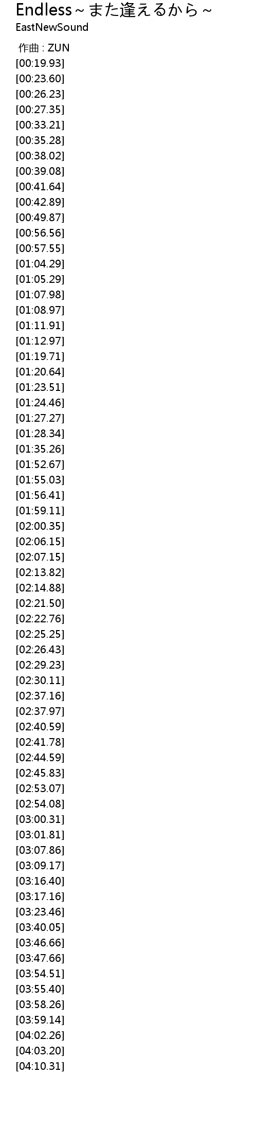 | [00:00.000] | 作曲 : ZUN |