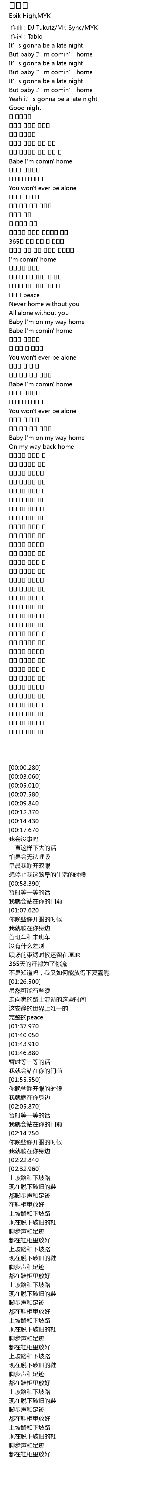 | [00:00.00] | 作曲 : DJ Tukutz/Mr. Sync/MYK |