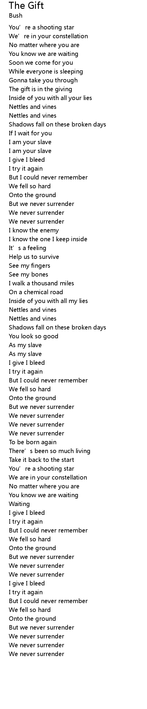 | 歌曲 | The Gift |