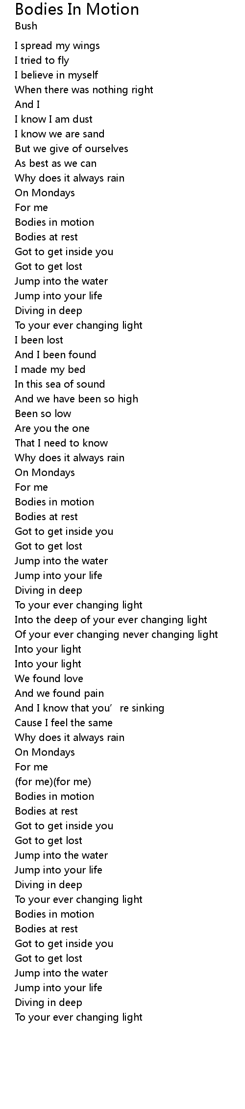| 歌曲 | Bodies In Motion |