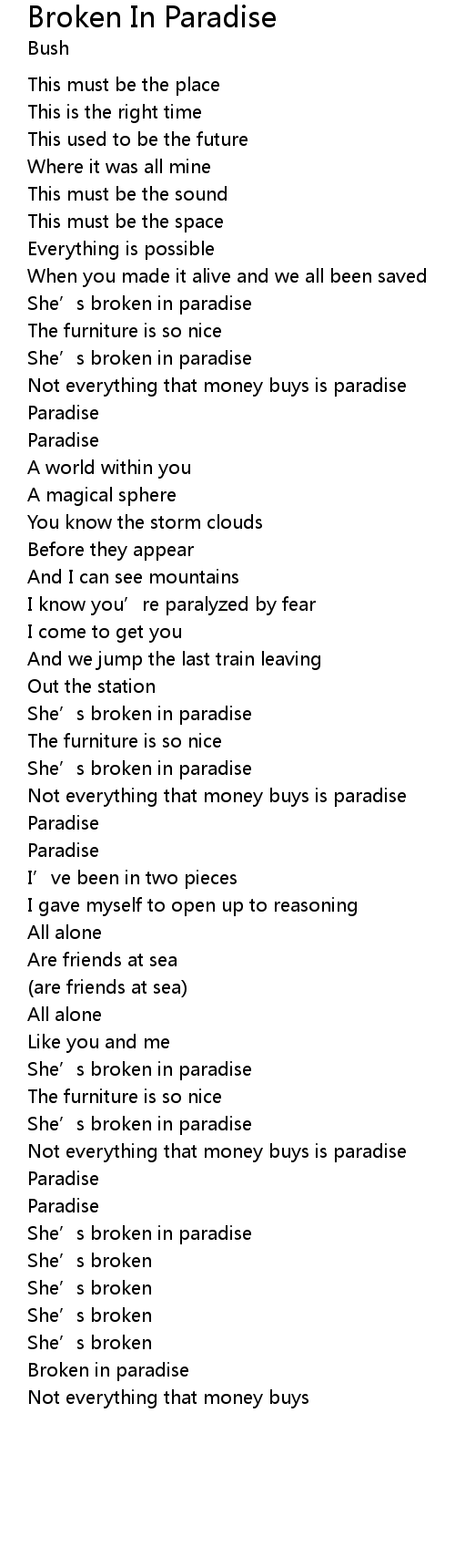 | She' s broken in paradise | |