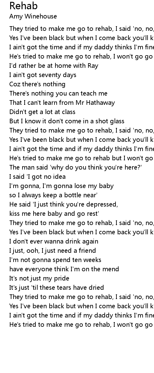 They tried to make me go to rehab, I said 'no, no, no' |